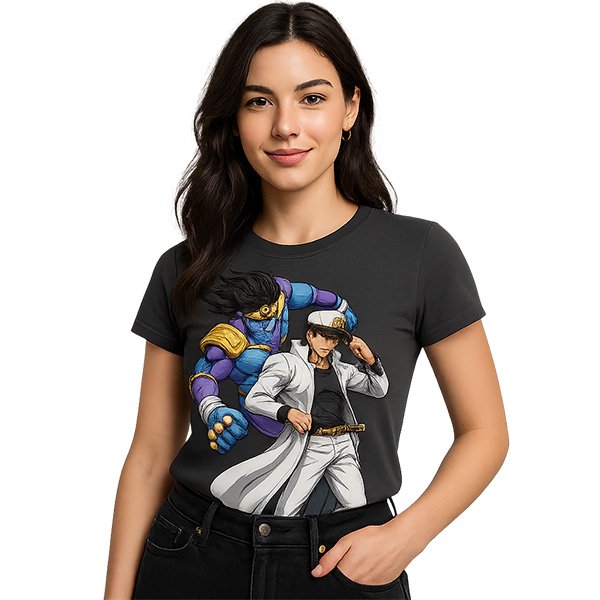 Unleash your inner Stand user with this legendary Jotaro Kujo Shirt, showcasing the fearless Joestar and his iconic Stand, Star Platinum. Designed for fans of JoJo’s Bizarre Adventure, this anime tee captures the power and precision of Jotaro’s stance in vivid color and sharp detail.